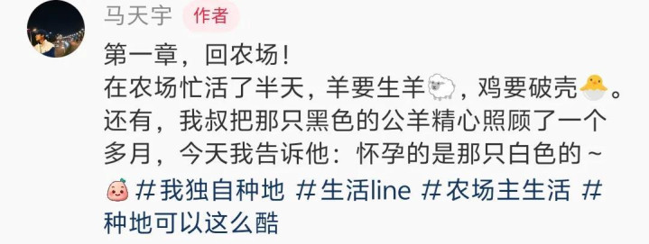 花果蔬菜、动物农田,诚然很调养,然而农活的职责量也很大,马天宇每天凌晨就需要起床干活,喂养、捡蛋、堆肥;