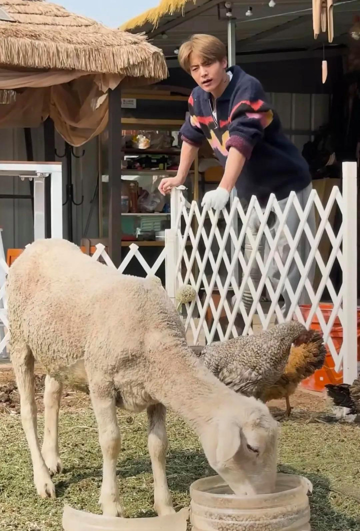 在马天宇的院子内部,除了鸡,农场里还有鹅、鸽子、小羊,马天宇每一次都会到菜园,将一些长残、吃剩的蔬菜收皆起来,然后丢给小羊和鸡吃,把羊和鸡喂饱之后,他又去整理菜地;